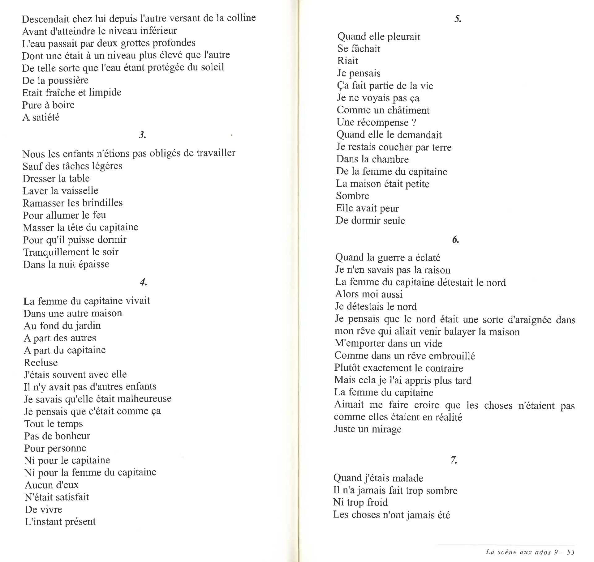 - Le texte prend une forme aux allures de partitions musicales. Pièce propice à un beau travail de Choeur. Comme le suggère l'auteur, il faut jouer musicalement "lento" et sans emphase. Mais les règles sont faites pour être transgressées !
